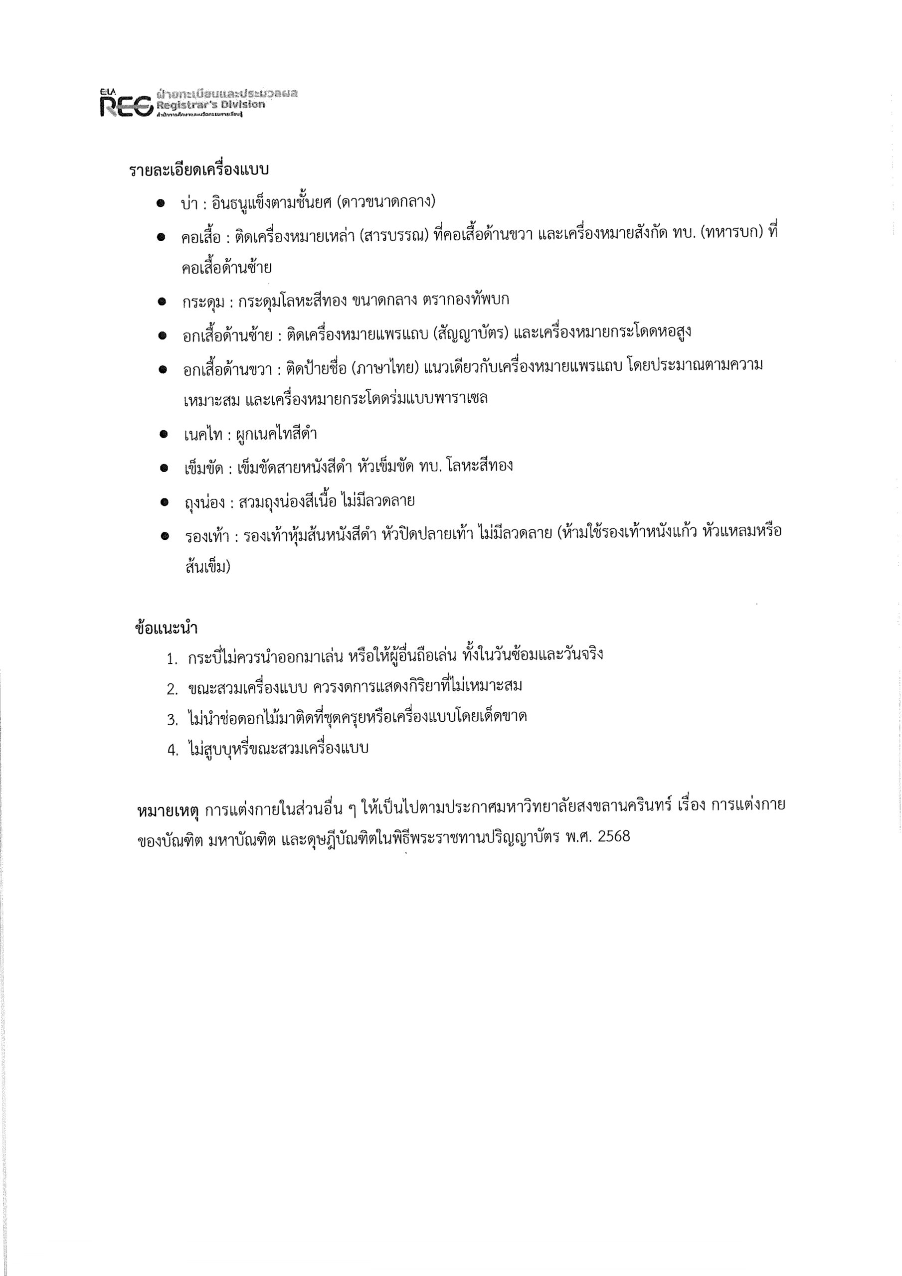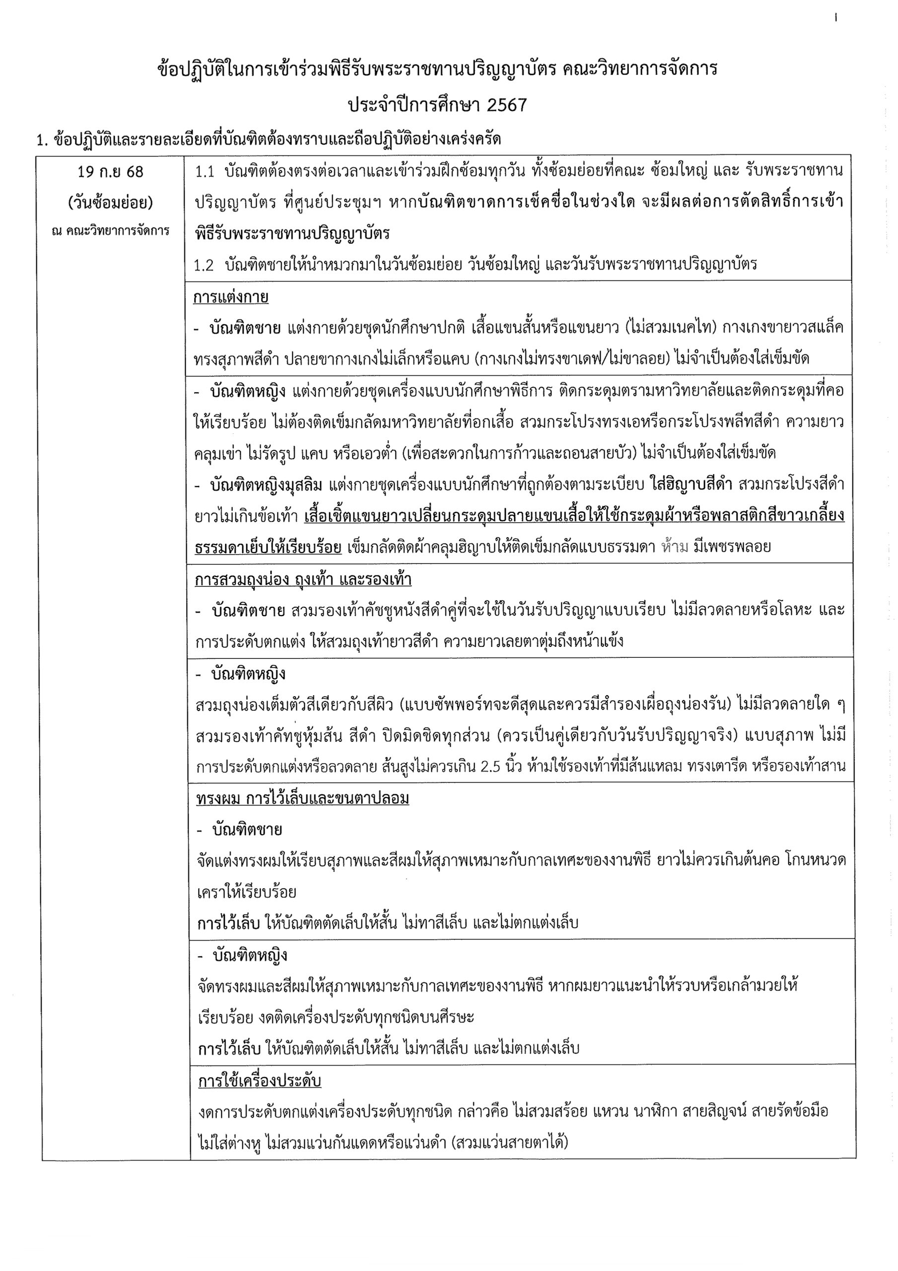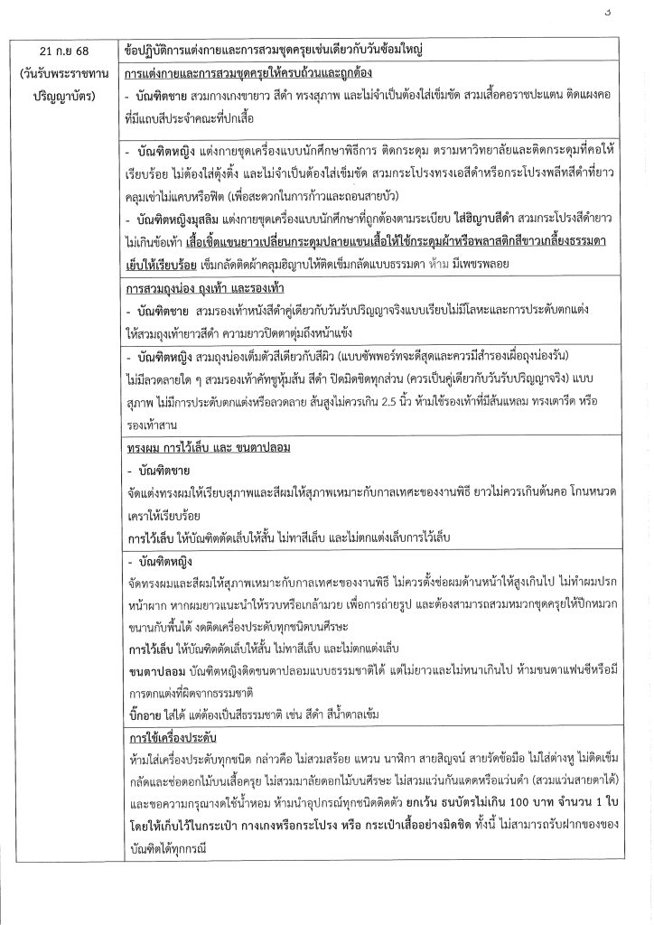 08. ห้ามบัณฑิตหญิงสวมรองเท้าสานหรือรองเท้าที่มีเฉพาะสายรัดข้อเท้าส้นแหลมและสูงเกิน 2.5 นิ้ว