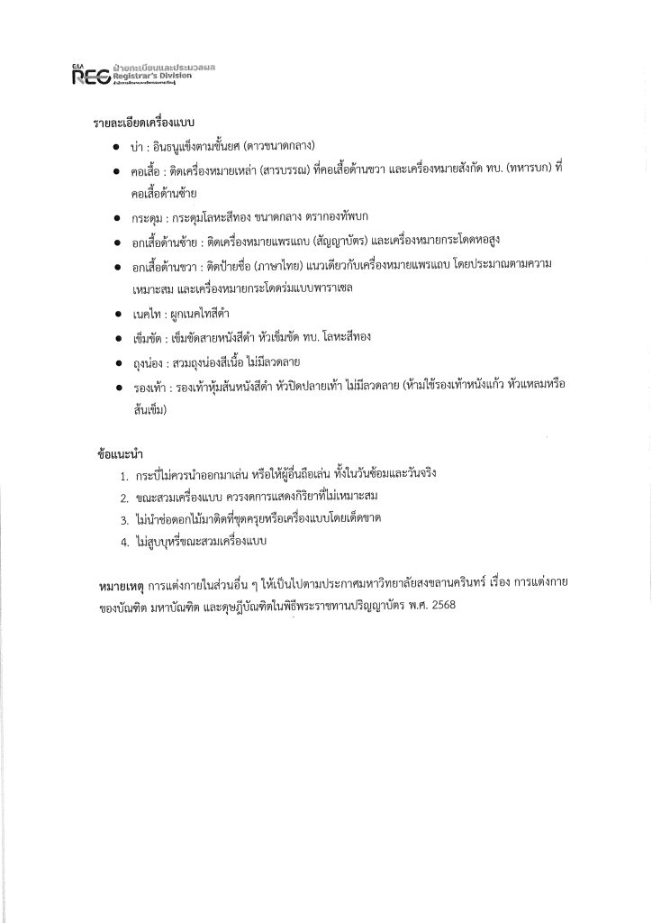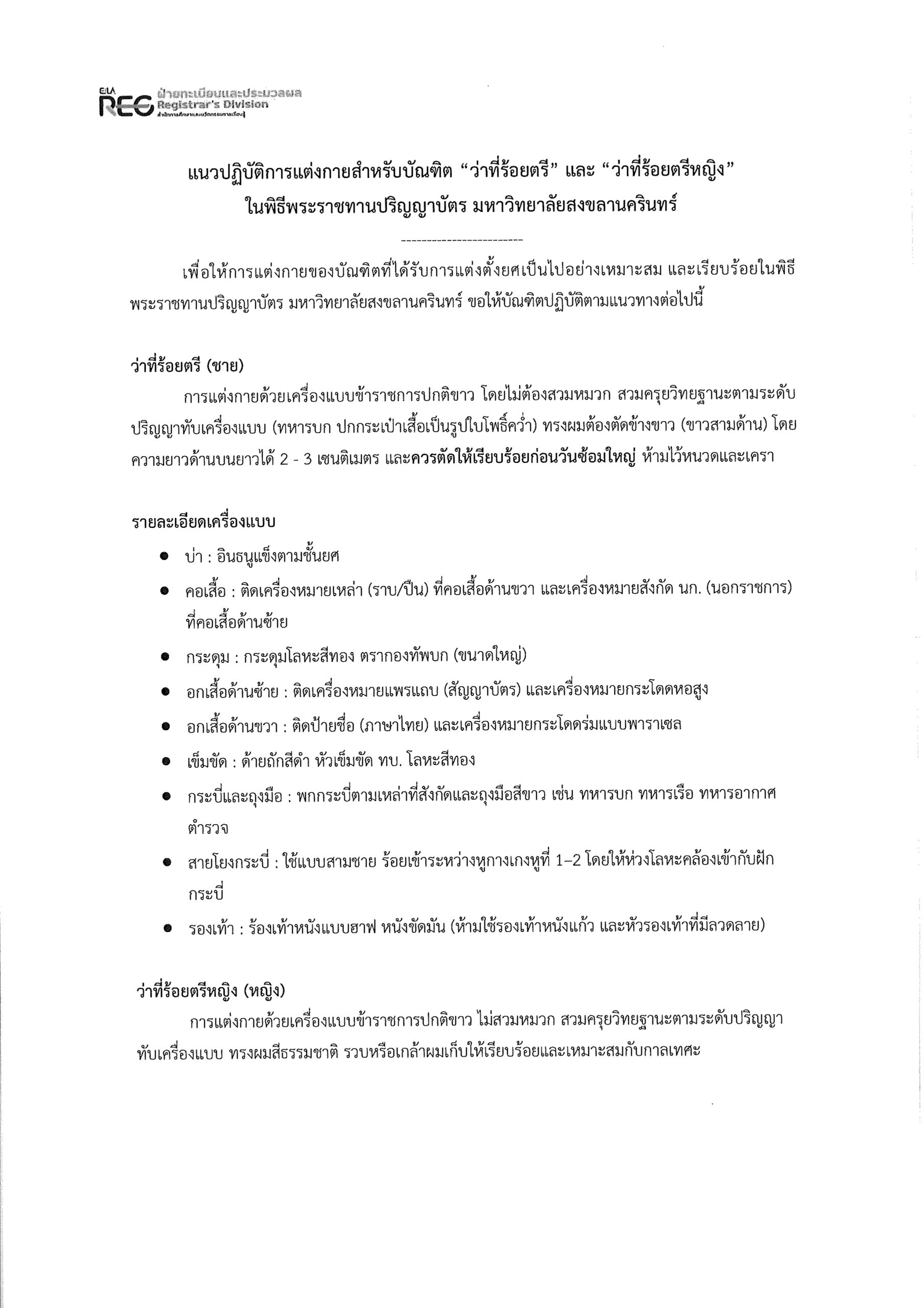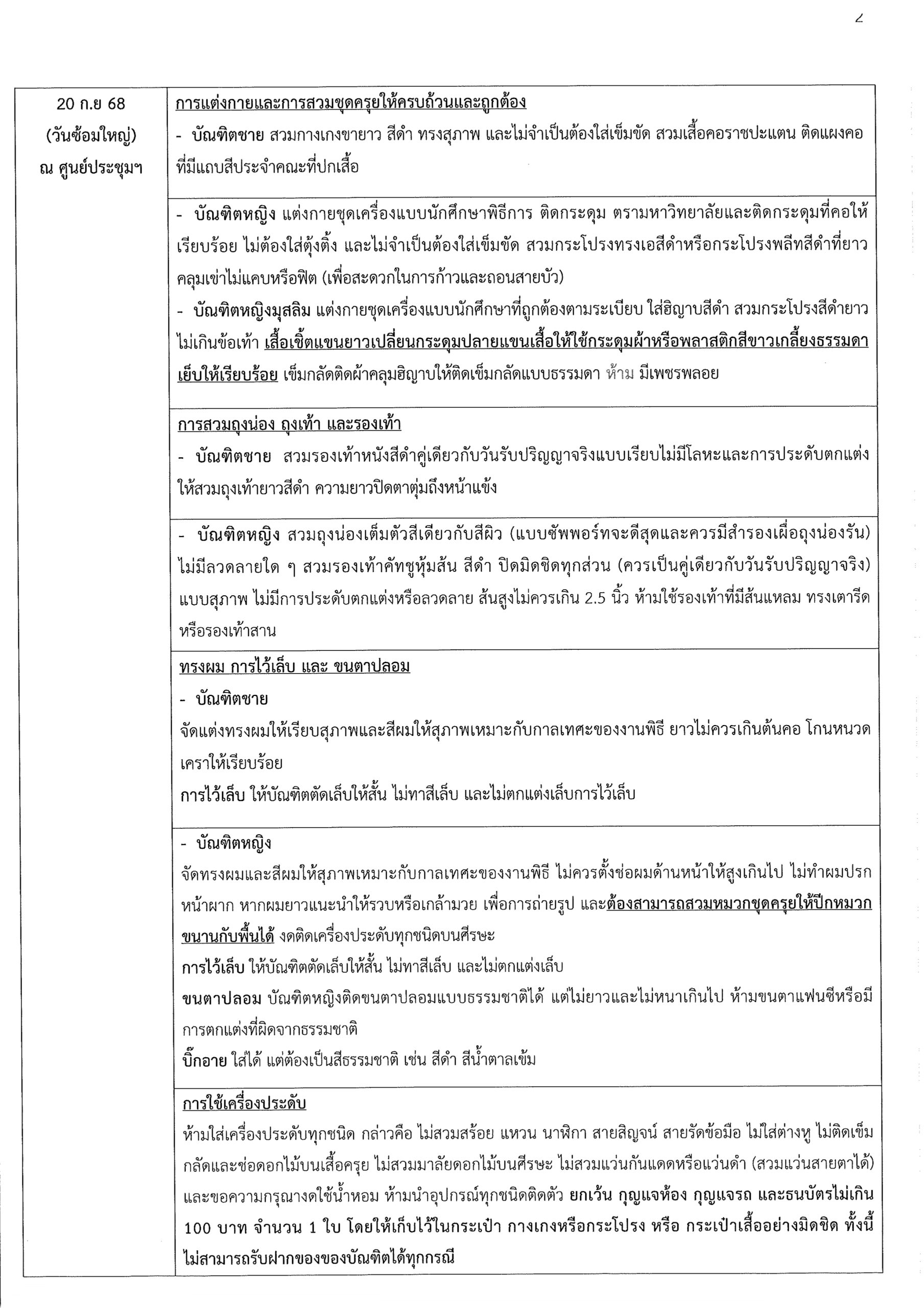 08. ห้ามบัณฑิตหญิงสวมรองเท้าสานหรือรองเท้าที่มีเฉพาะสายรัดข้อเท้าส้นแหลมและสูงเกิน 2.5 นิ้ว
